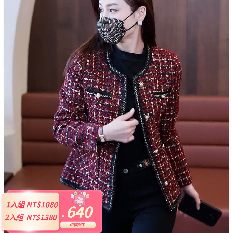 2025新款長袖韓式格子小香風外套 顯瘦修身 圓領秋冬新款長袖格子小香風 高檔外套 百搭顯氣質