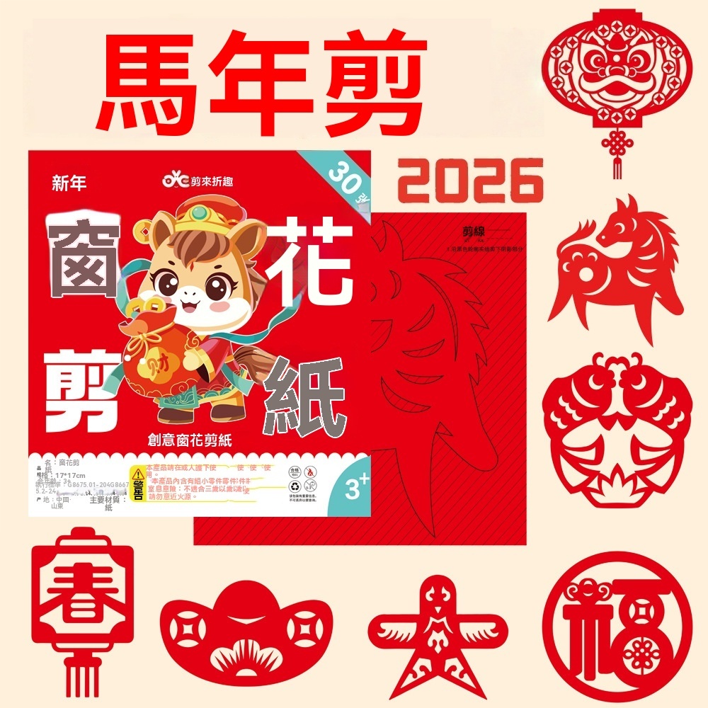[1] 送安全剪刀【馬年窗花剪紙 】-1入組(到手60張)-NT$899