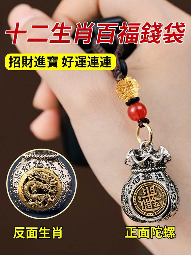 十二生肖錢袋子鑰匙扣,本命年必備 ,寓意美好,送朋友,送家人,送自己 『日進斗金,貔貅招財,時來運轉,日進鬥金百福錢袋可轉動福袋鑰汽車匙扣挂件吊墜男女複古做舊編繩』